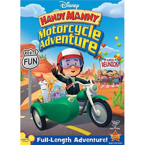 Product description: Feel the wind in your hair, and join Manny as he packs up his Tools for an exciting road trip. They re heading out to a fiesta grande Manny s family reunion! But when Pat veers off in search of his own family, Manny s plans take a detour. Can he race to the rescue in time to make it to the party? Filled with new songs, old friends, and an inspiring message, Manny s Motorcycle Adventure shows that when it comes to family, there s always something to celebrate!